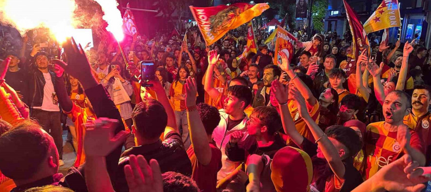 Galatasaray’ın şampiyonluğu Uşak’ta coşkuyla kutlandı: Taraftarlardan Fenerbahçe tabutlu gösteri