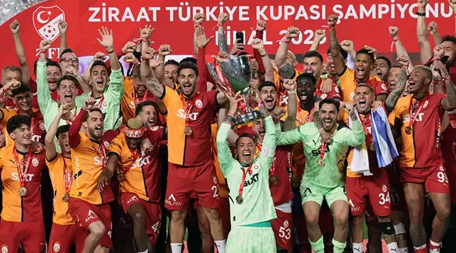 [ad_1] Galatasaray, 63. Ziraat Türkiye Kupası finalinde Trabzonspor’u 3-0 yenerek 19. kez Türkiye Kupası’nın sahibi oldu. Kupa, TFF Başkanı Hacıosmanoğlu tarafından Muslera’ya verildi. 2024-2025 sezonunun Ziraat Türkiye Kupası şampiyonu Galatasaray oldu. Sarı-kırmızılı ekip, finalde karşılaştığı Trabzonspor’u Gaziantep Stadyumu’nda Osimhen’in 2 ve Barış Alper Yılmaz’ın 1 golüyle 3-0 mağlup ederek kupayı müzesine götürdü. Bu galibiyetle birlikte […]